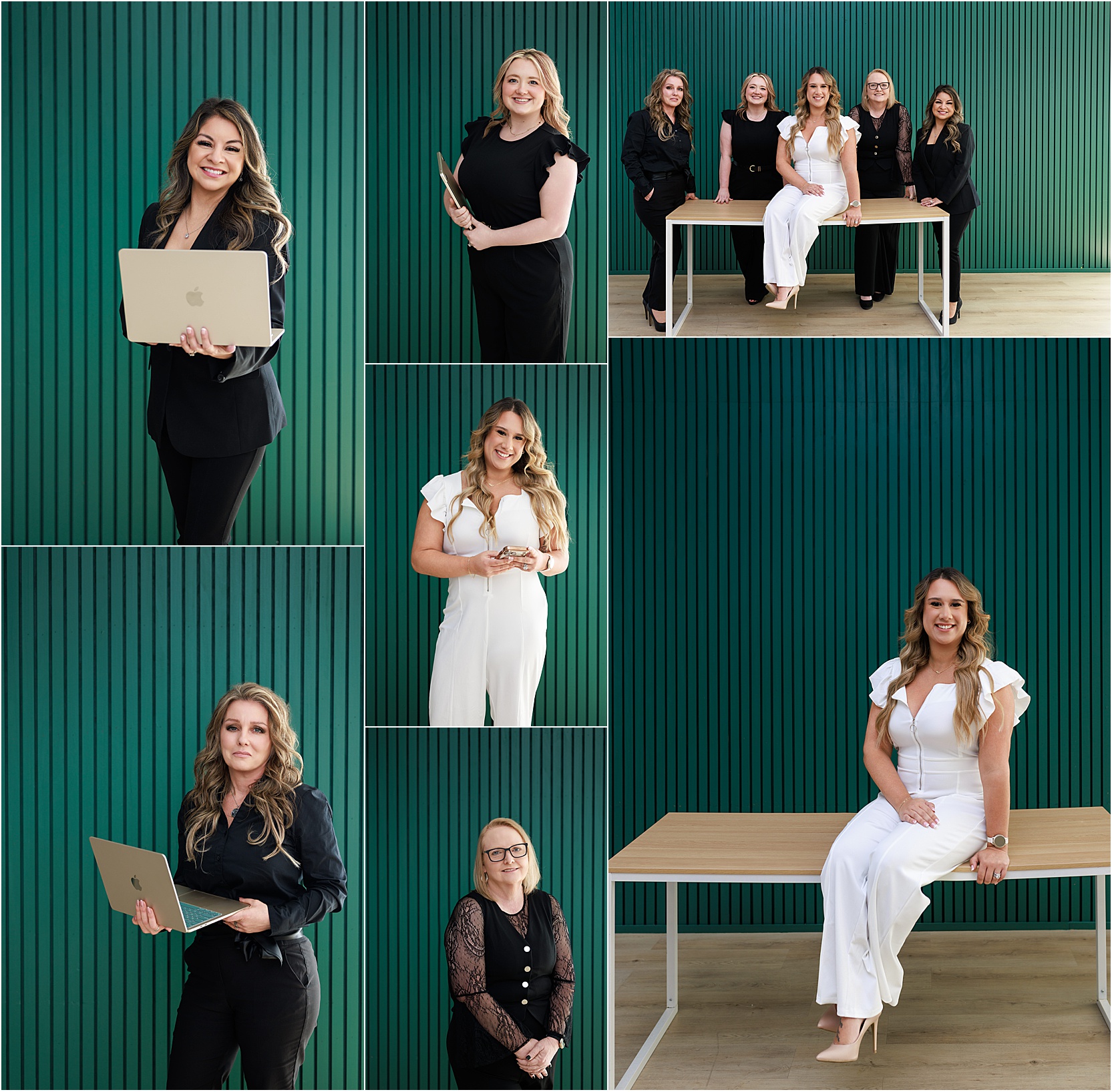 They came in prepared. We knew exactly what we were shooting for, which meant the session flowed effortlessly and the time flew by. We even lucked out with a studio that had the perfect green wall to complement their black and green branding colors. Sometimes the universe really does understand the assignment.